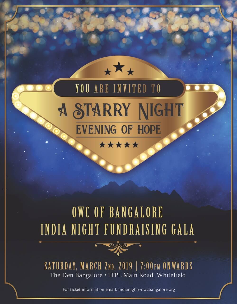 Come dance the night away at Whitefield’s hottest new hotel, The Den! This night’s event will raise funds for OWC sponsored charities. Tickets will be on sale for 5000 RS pp cash and will include a specially curated dinner along with an open bar!